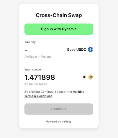 The following open source example app demonstrates building onramps, cross-chain swaps, payment retries, and processing address withdrawals using the Halliday API directly with a Dynamic embedded wallet.
